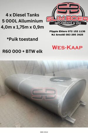 4 x Diesel Tanks, 5,000Lt, Alluminium, 4m x 1.75m x 0.9m, Puik toestand