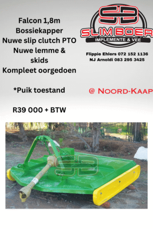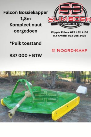 Falcon 1,8m Bossiekapper, nuwe slip clutch PTO, nuwe lemme en skids. Kompleet oorgedoen