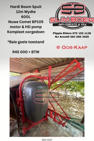 • Hardi Boom spuit, 12m Wydte, 600Lt, Nuwe Comet BP105 motor & HD pomp, Kompleet oorgedoen, Baie goeie toestand