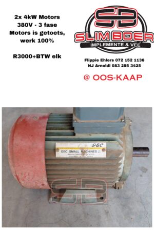 2 x 4kW Motor, 380V – 3 fase, Getoets, werk 100%
