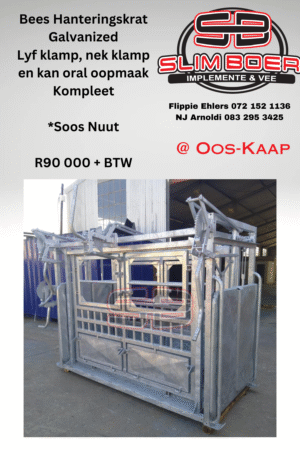 Skuifbare Beeskraal. 20 x 3m panele, Nek klamp, Skuifhek, 2 x Drukgang arches met waentjie en laaibank