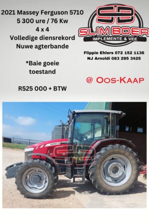 Massey Ferguson 5710 (4×4), 5,300 ure, 76kW, Volledige diensrekord, Nuwe agterbande