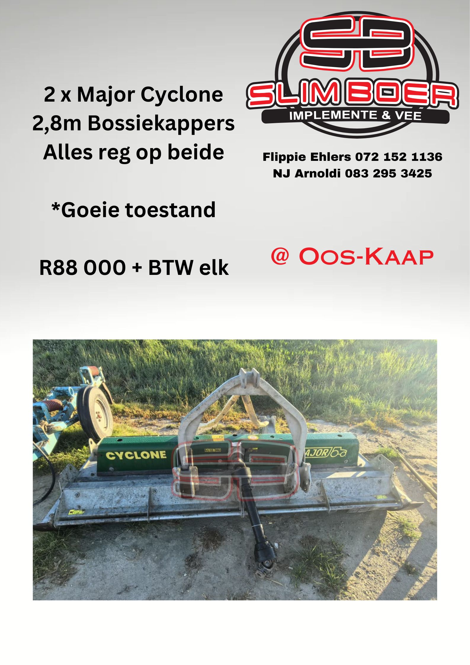 2 x Major Cyclone 2,8m Bossiekappers. Alles reg op beide. Goeie toestand