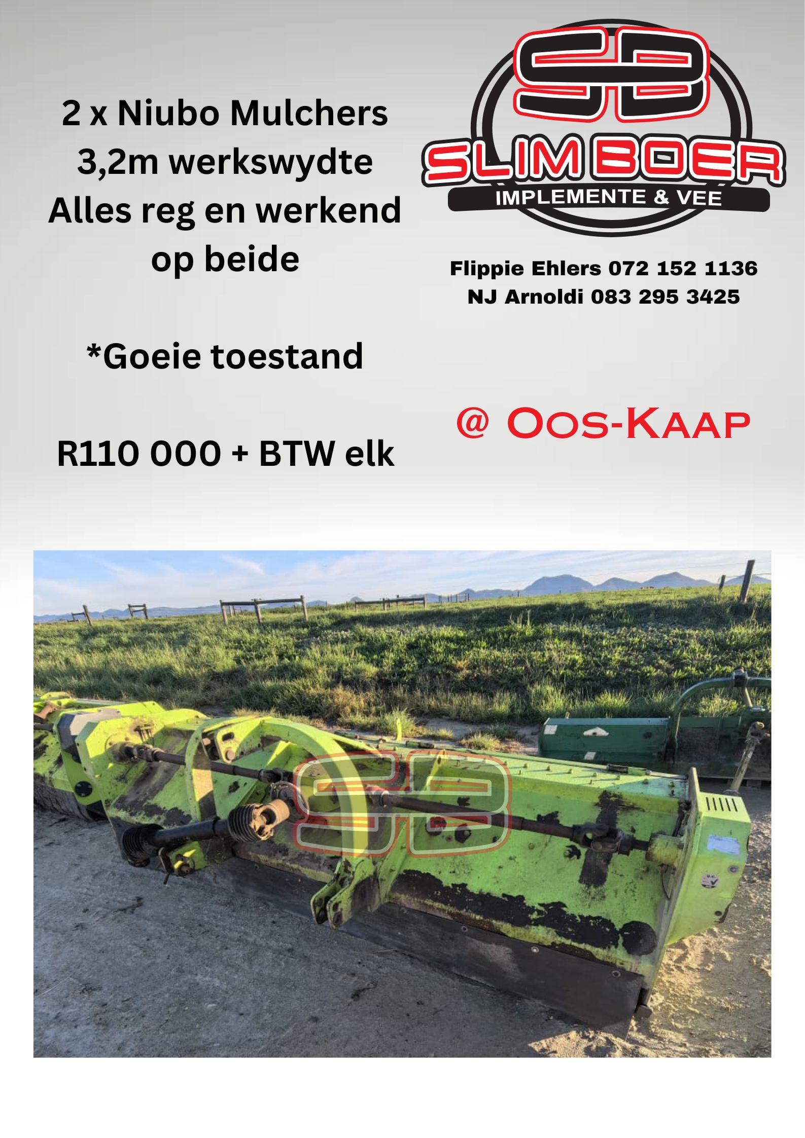 2 x Niubo Mulchers, 3,2m werkwydte, Alles reg en werkend op beide