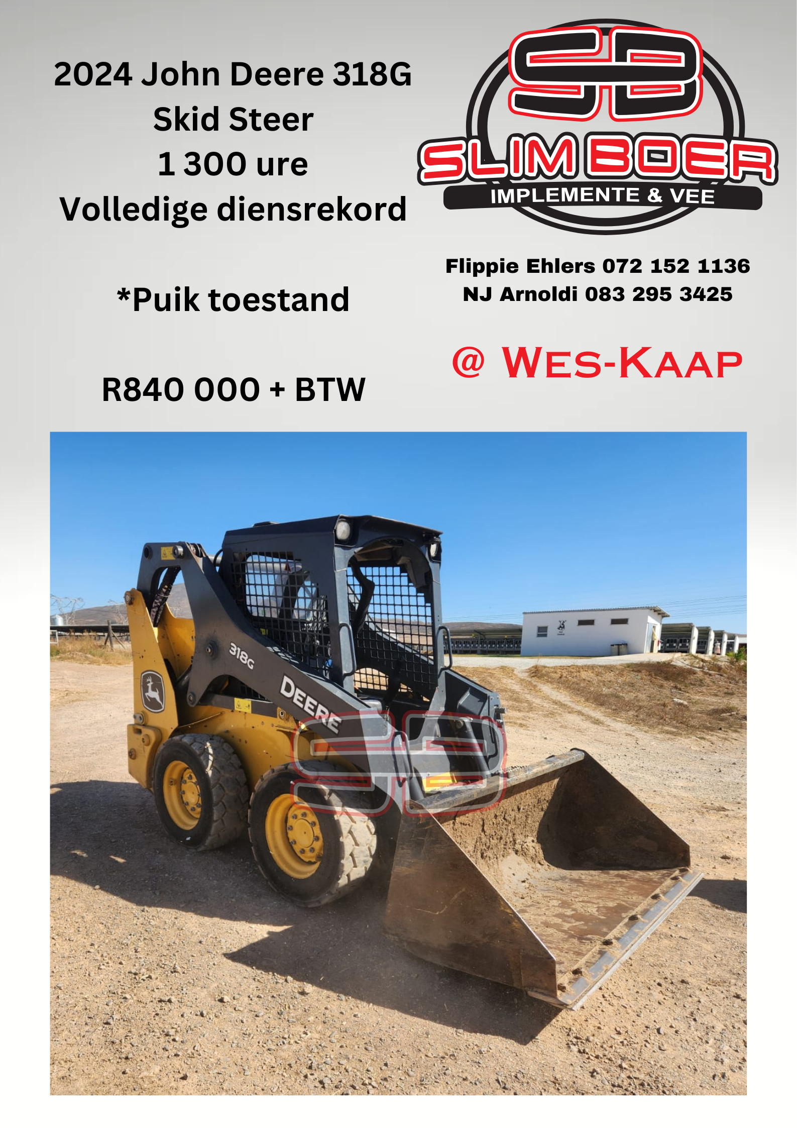 2024 John Deere 318G Skid Steer 1300 ure. Vol diensrecord