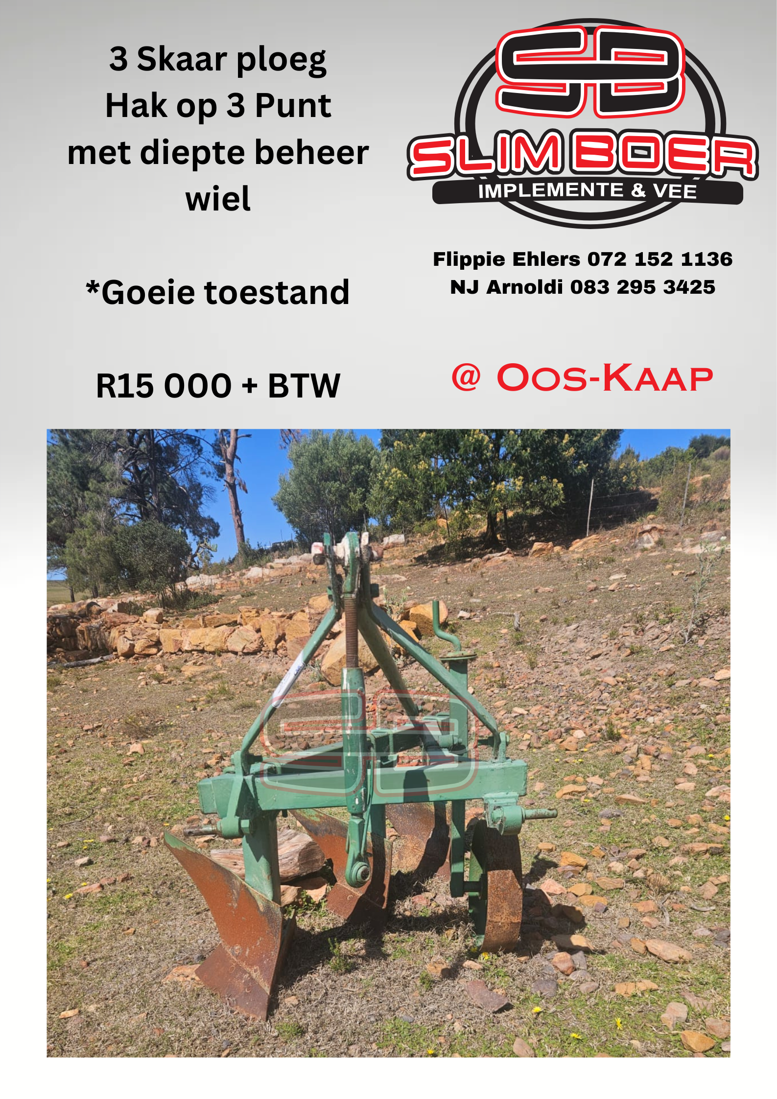 3-Skaar ploeg. Hak op 3-Punt met Diepte beheer wiel