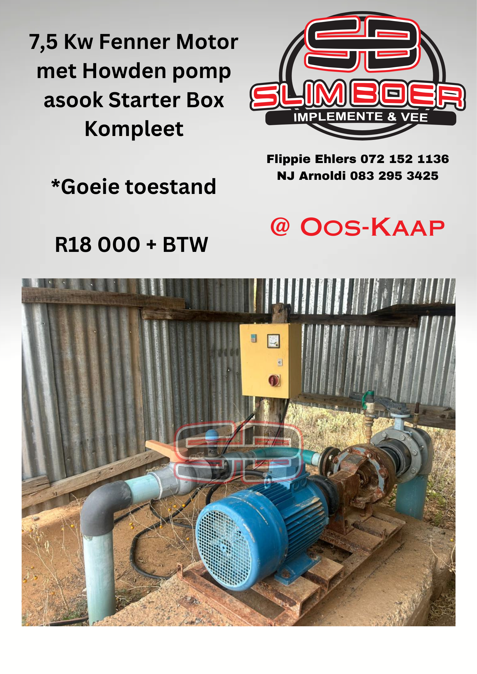 7,5kW Fenner Motor met Howden pomp asook Starter Box, Kompleet