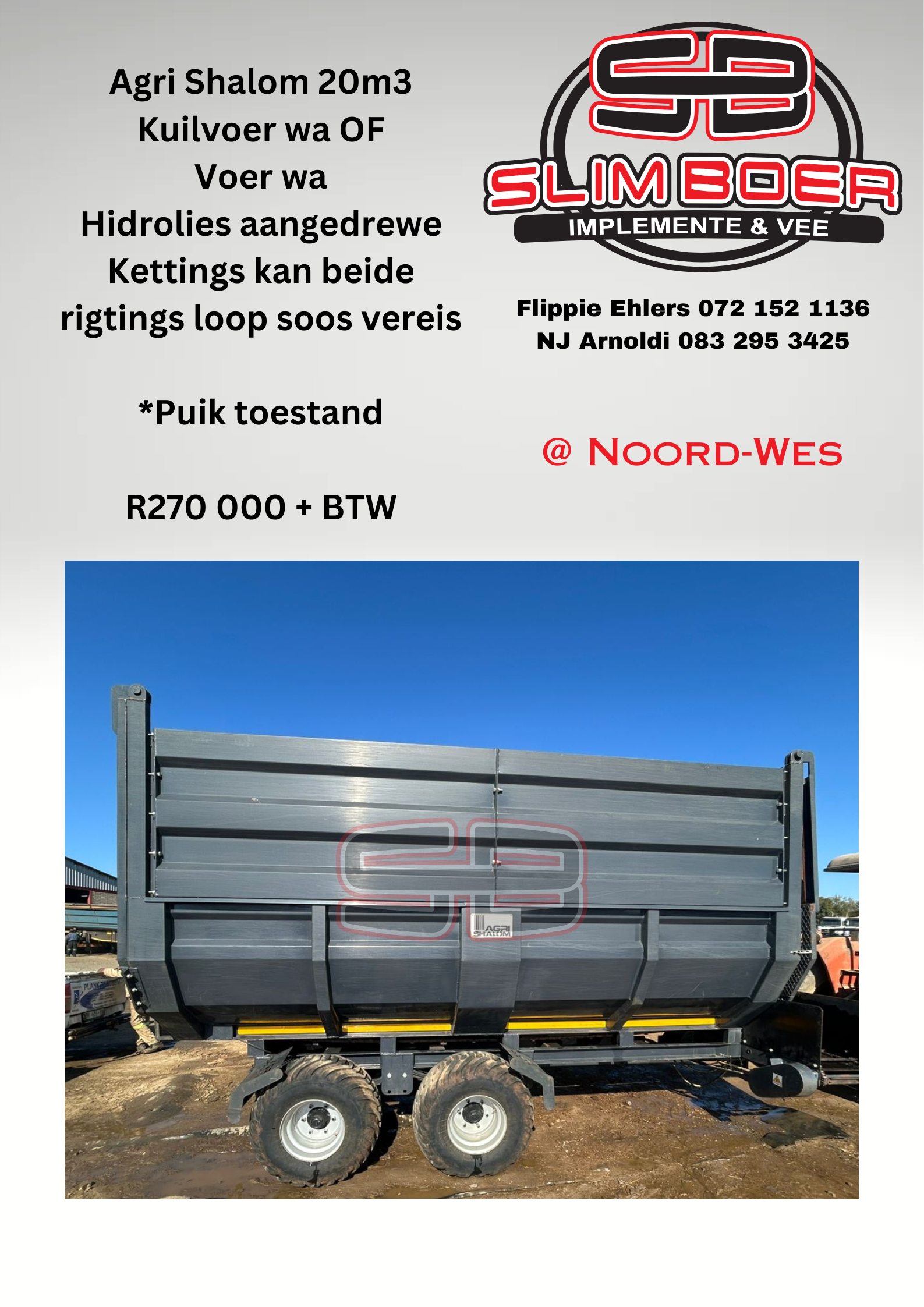 Agri Shalom 20m3 Kuilvoer of Over Wa, hidroliese aangedrewe