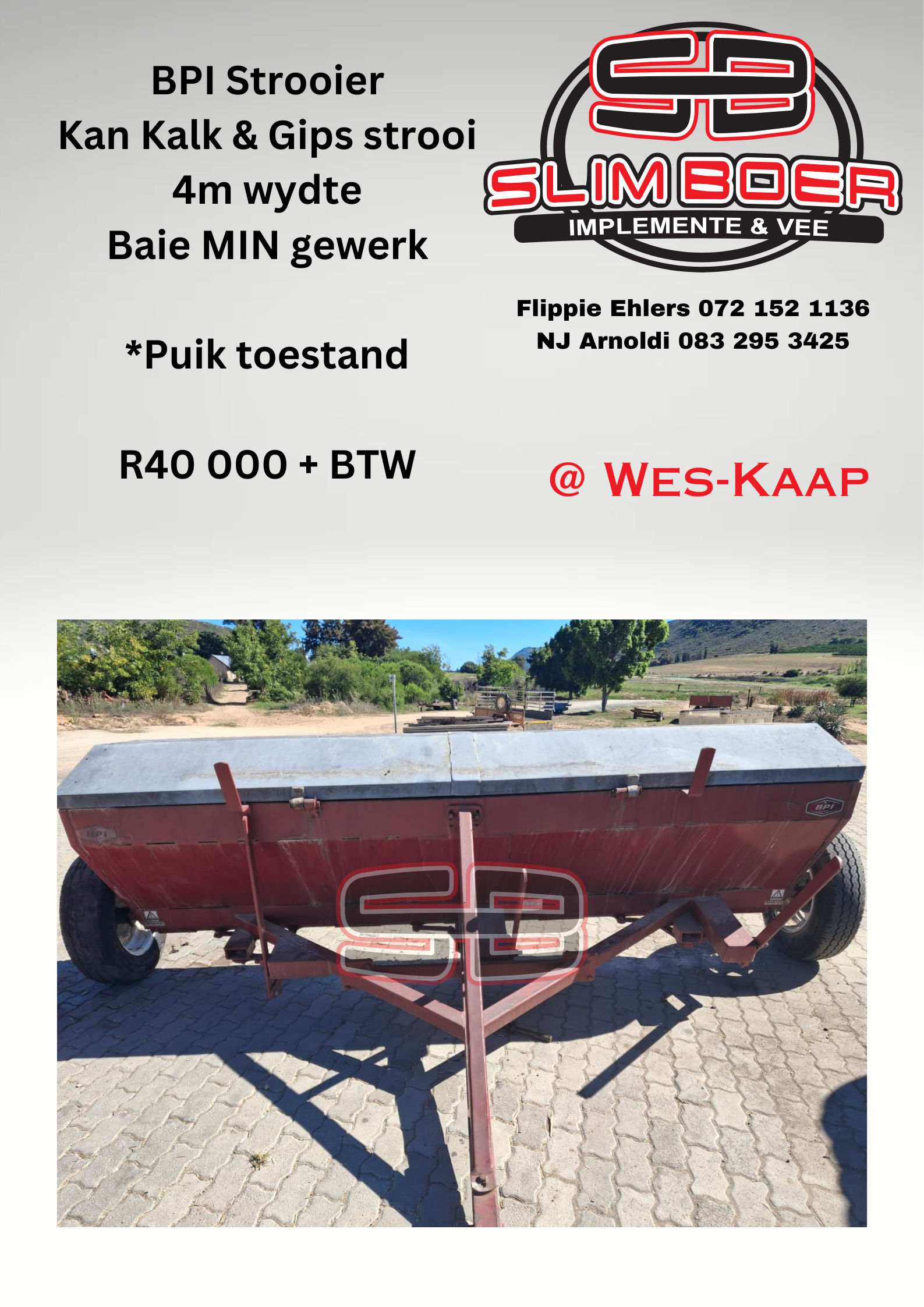 BPI Strooier, kan Kalk & Gips strooi, 4m wydte