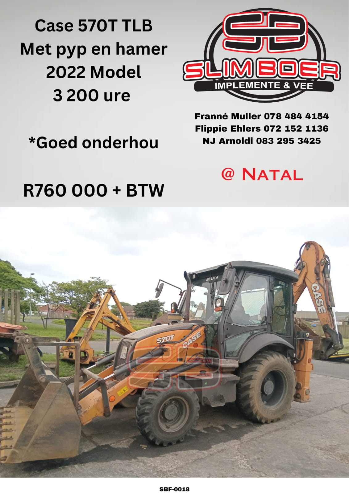 Case 570T TLB met pyp en hammer (2022 model), 3200 ure, Goed onderhou