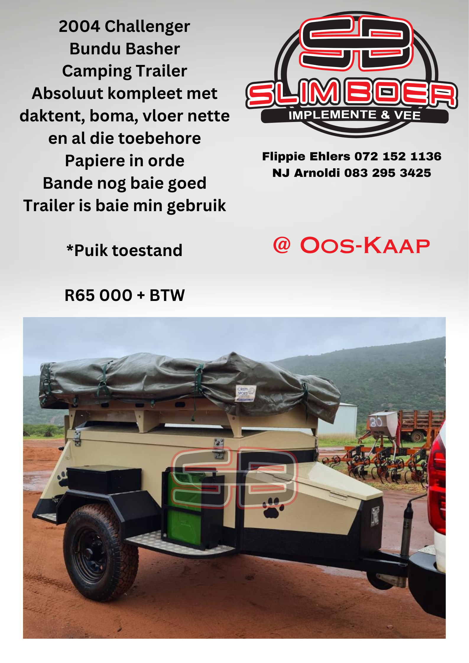 Challenger Bundu Basher, Camping Trailer, Kompleet met daktent, boma, vloer nette. Papiere in orde, Bande baie goed. Min gebruik