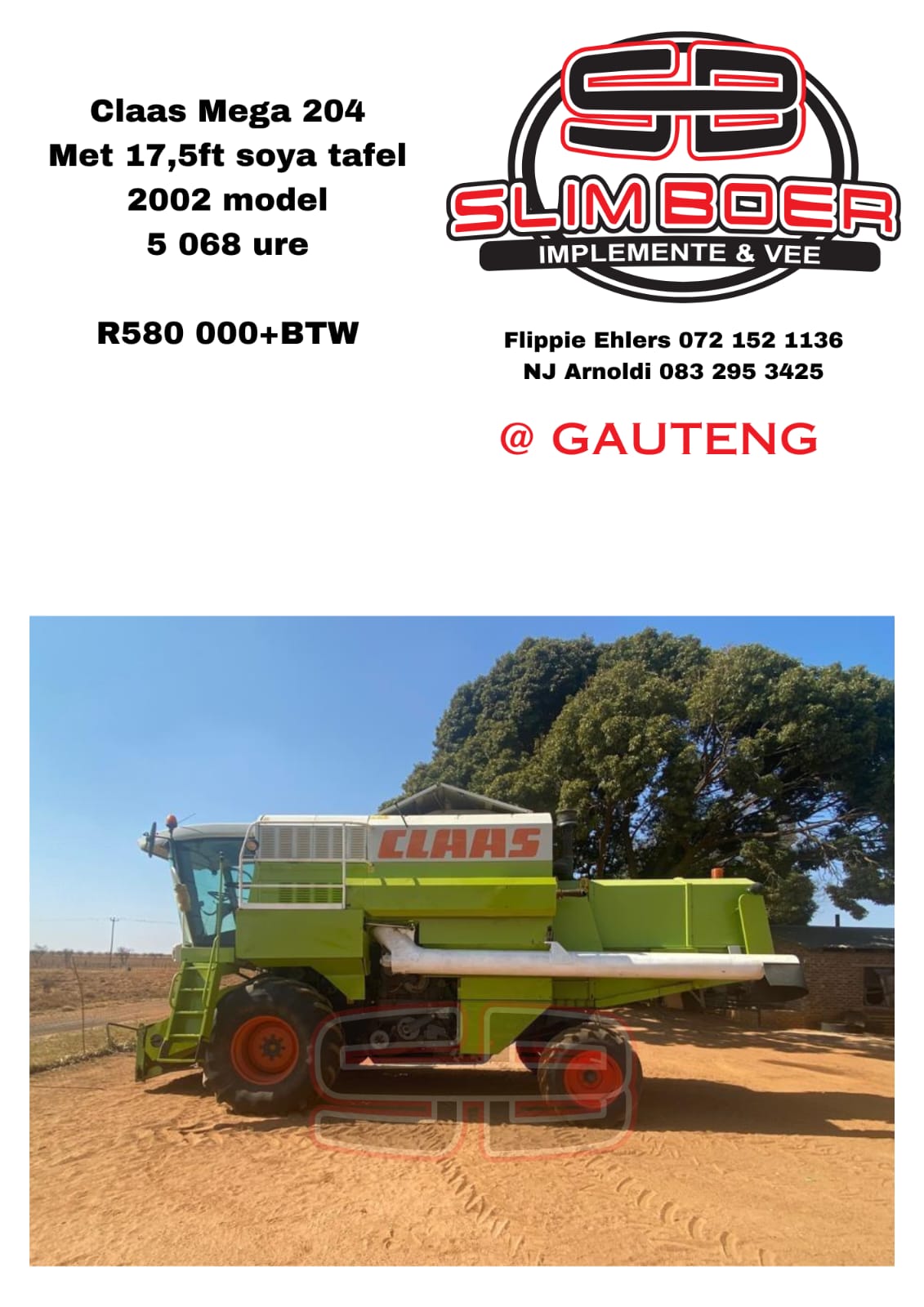 Claas Mega 204 met 17,5ft Soya Tafel (2002 Model) 5,068 ure
