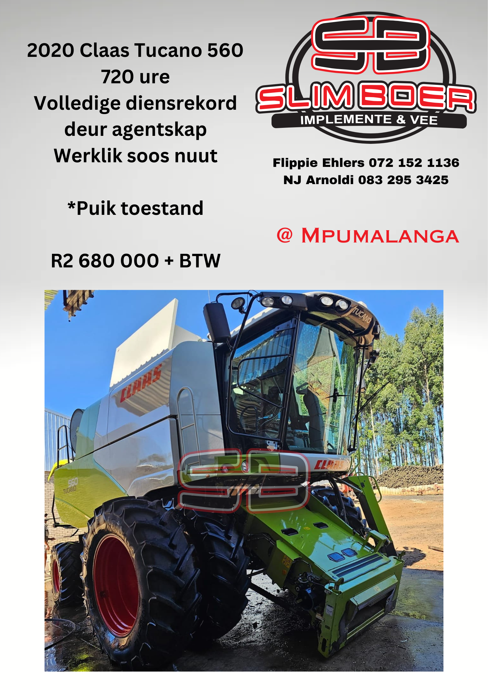 Claas Tucano 560 Stroper (2020 Model) 720 ure Volledige diensrekord by agent, Soos nuut