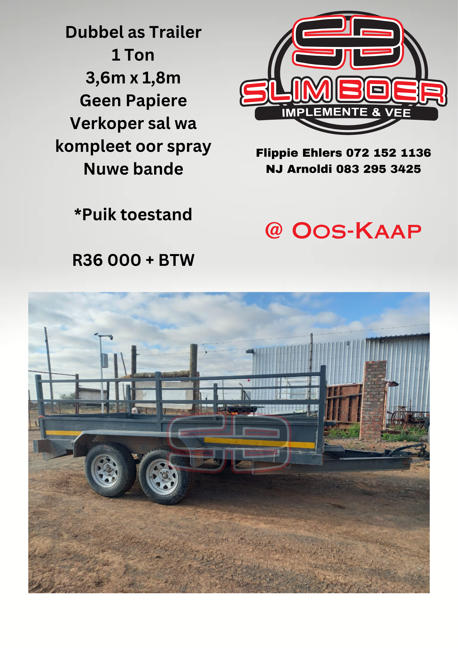Dubbel as Trailer 1Ton 3,6m x 1,8m (geen papiere) nuwe bande