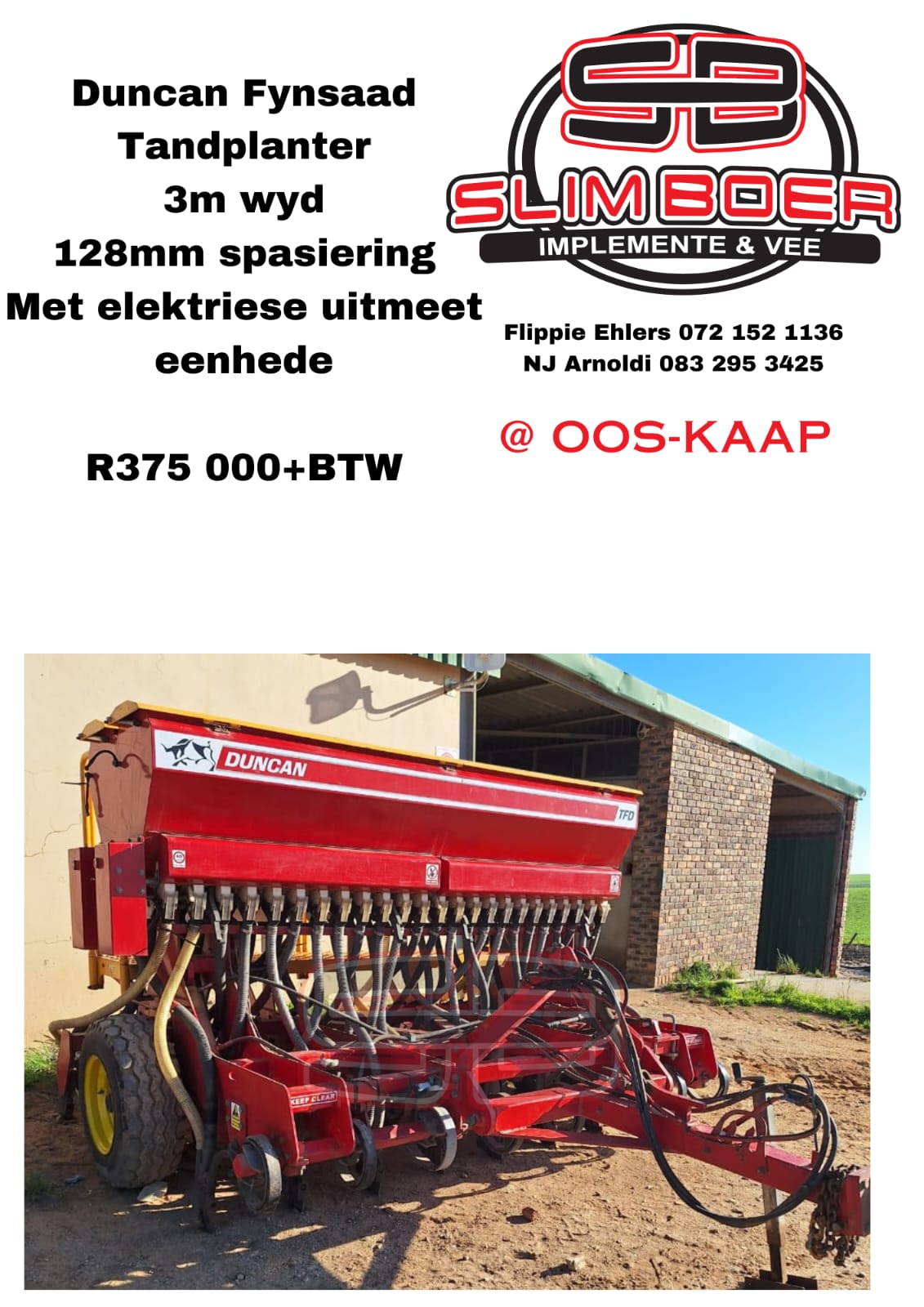 Duncan Fynsaad Tandplanter, 3m wyd, 128mm spasiering, Met elektriese uitmeet eenheid