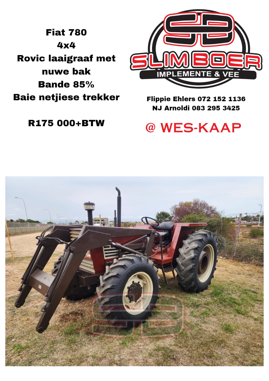 Fiat 780, 4×4, Rovic laaigraaf met nuwe bak, Bande 85%, baie netjies