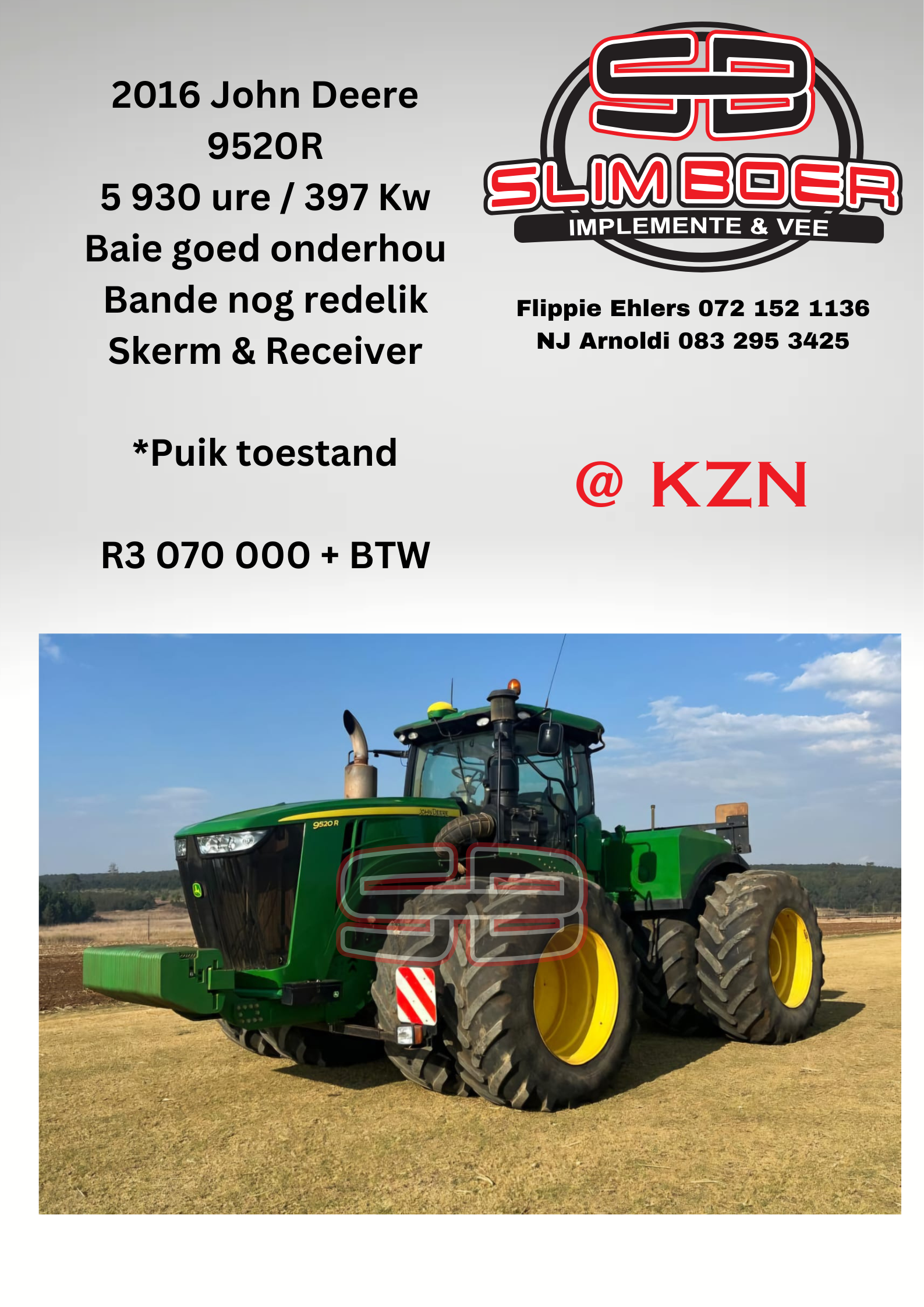 John Deere 9520R, (2016 model) 5,930 ure, 397kW Goed onderhou, Skerm & Receiver
