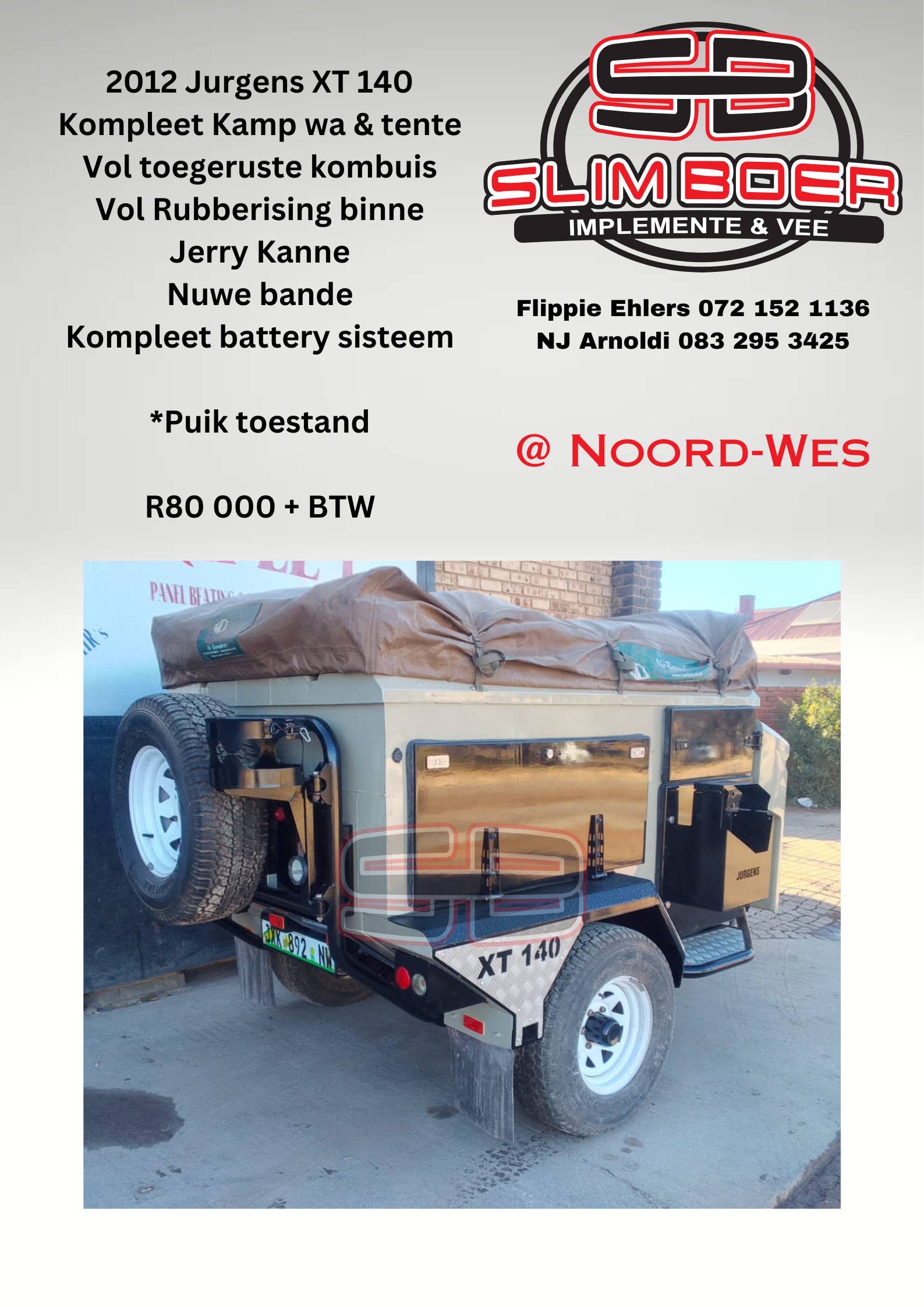 Jurgens XT 140, Kompleet Kamp wa & tente, kombuis, nuwe bande, kompleet battery sisteem