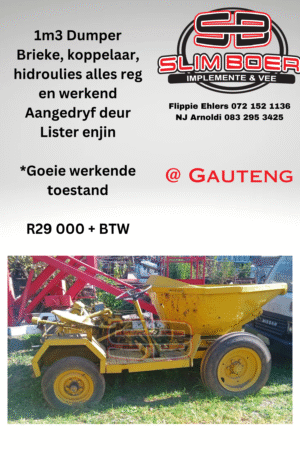 1m3 Dumper. Brieke, koppelaar, hidroulies alles reg (Lister enjin)
