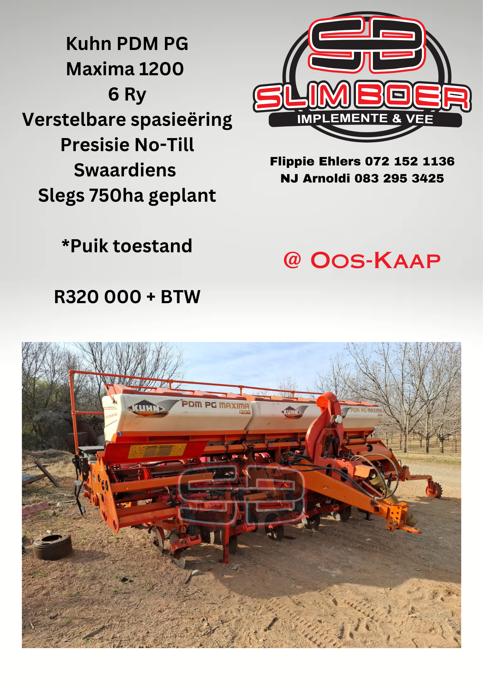 Kuhn PDM PG Maxima 1200 6 Ry Verstelbare spasieering Presisie No-Till Swaardiens, slegs 750ha geplant