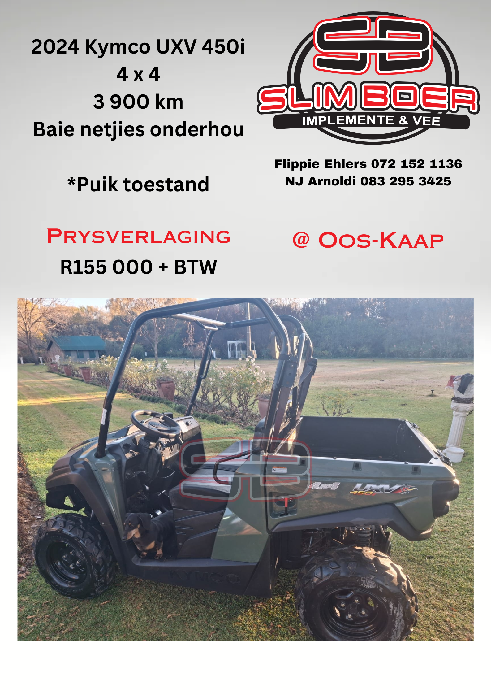 Kymco UXV 450i, 4×4, 3900km. Baie netjies onderhou. Puik toestand