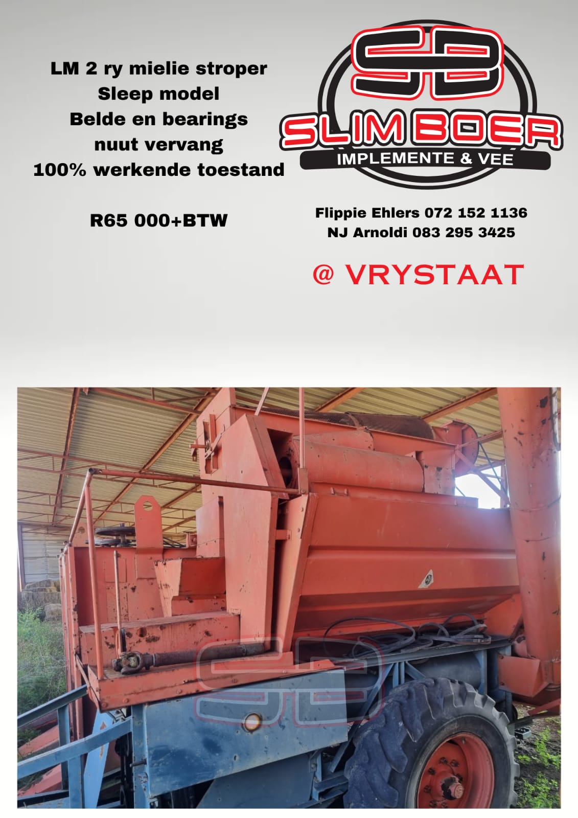 LM 2 ry Mielie Stroper, sleep model (belde en bearings nuut vervang) 100% werkend