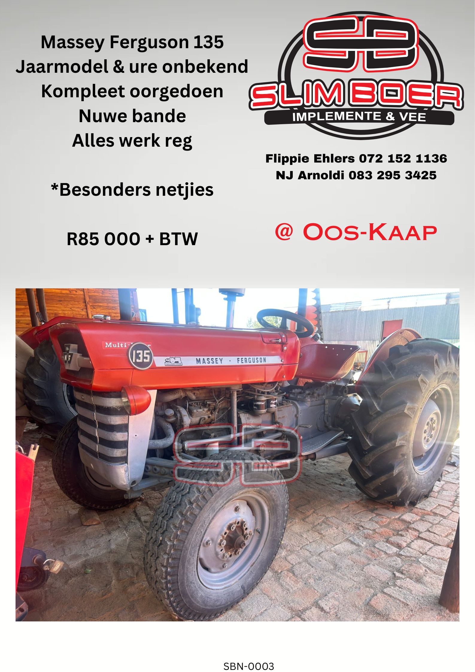 Massey Ferguson 135, (jaar en ure onbekend) Kompleet oorgedoen, Nuwe Bande, Alles werk reg