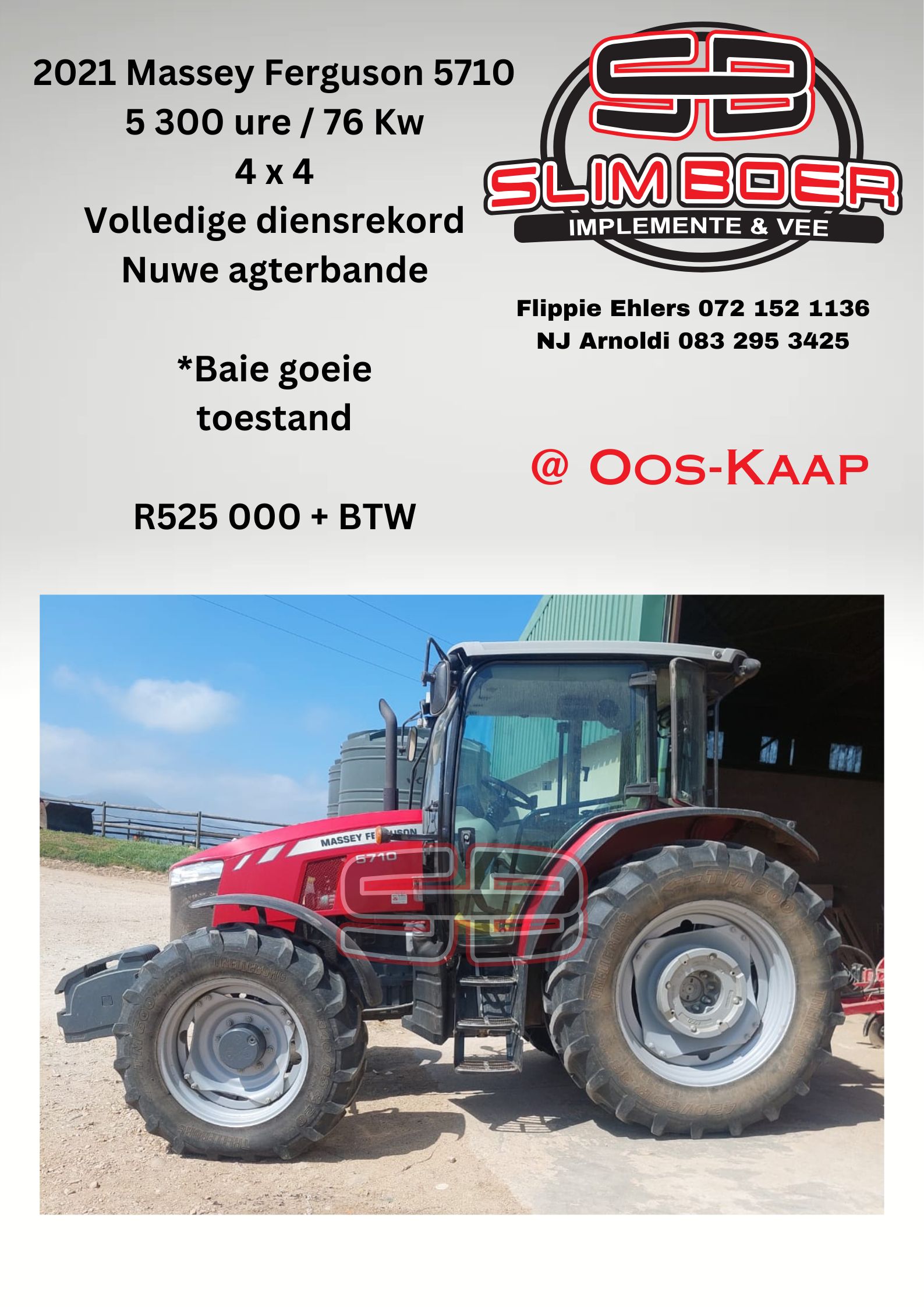 Massey Ferguson 5710 (4×4), 5,300 ure, 76kW, Volledige diensrekord, Nuwe agterbande