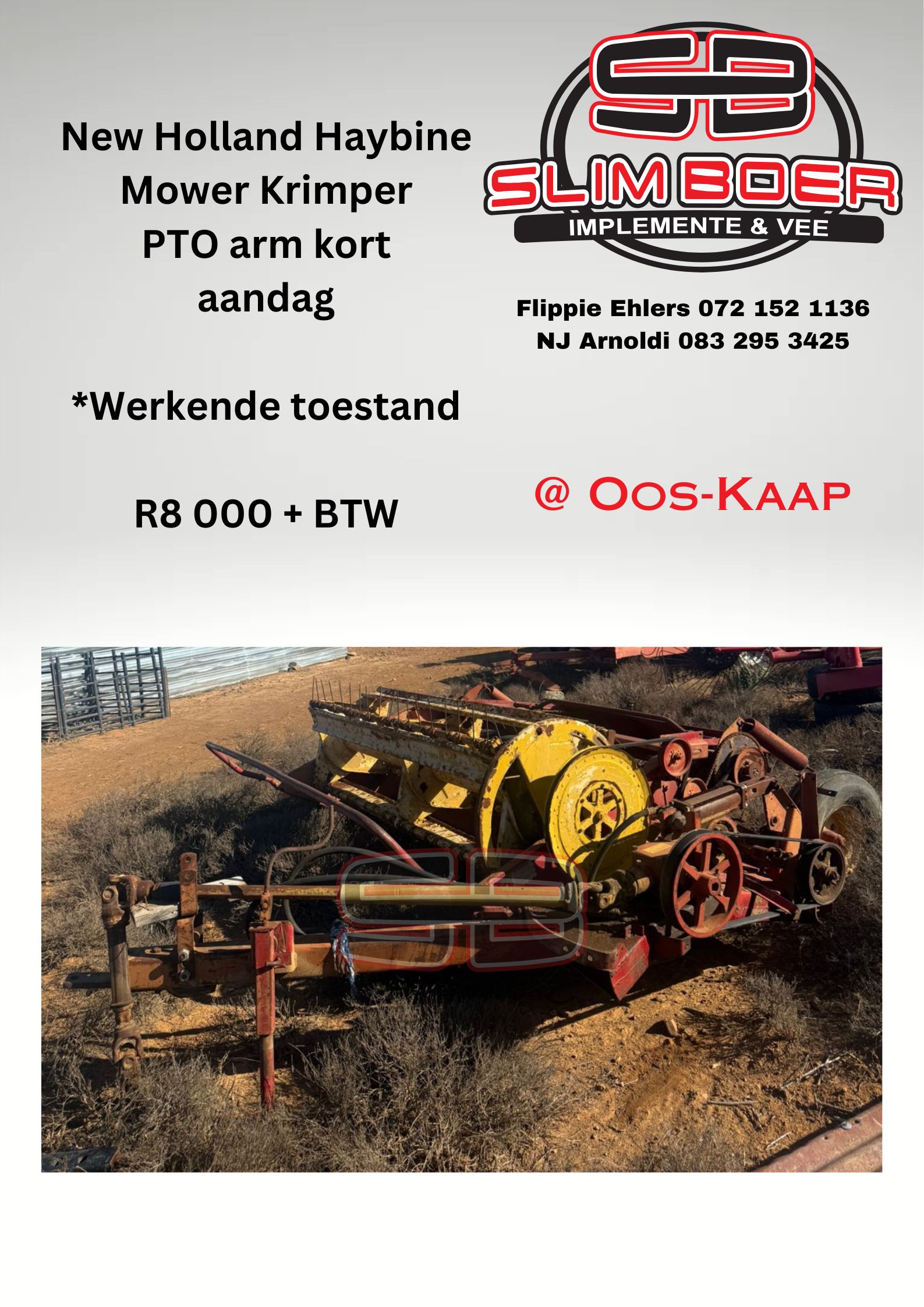 New Holland Haybine Mower Krimper PTO arm kort aandag. Werkende toestand