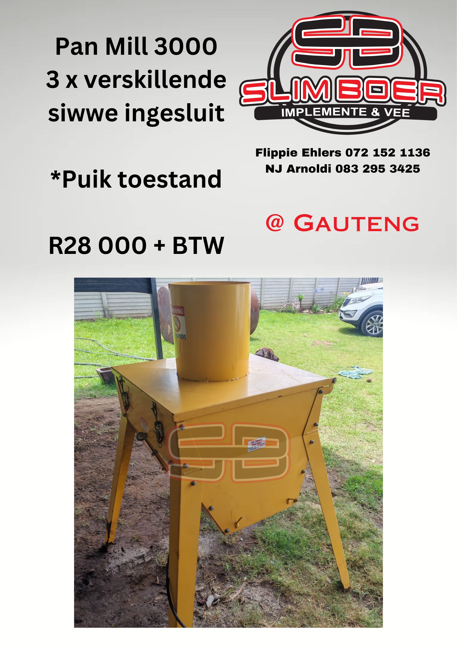 Pan Mill 3000, 3 x verskillende siwwe ingesluit, puik toestand