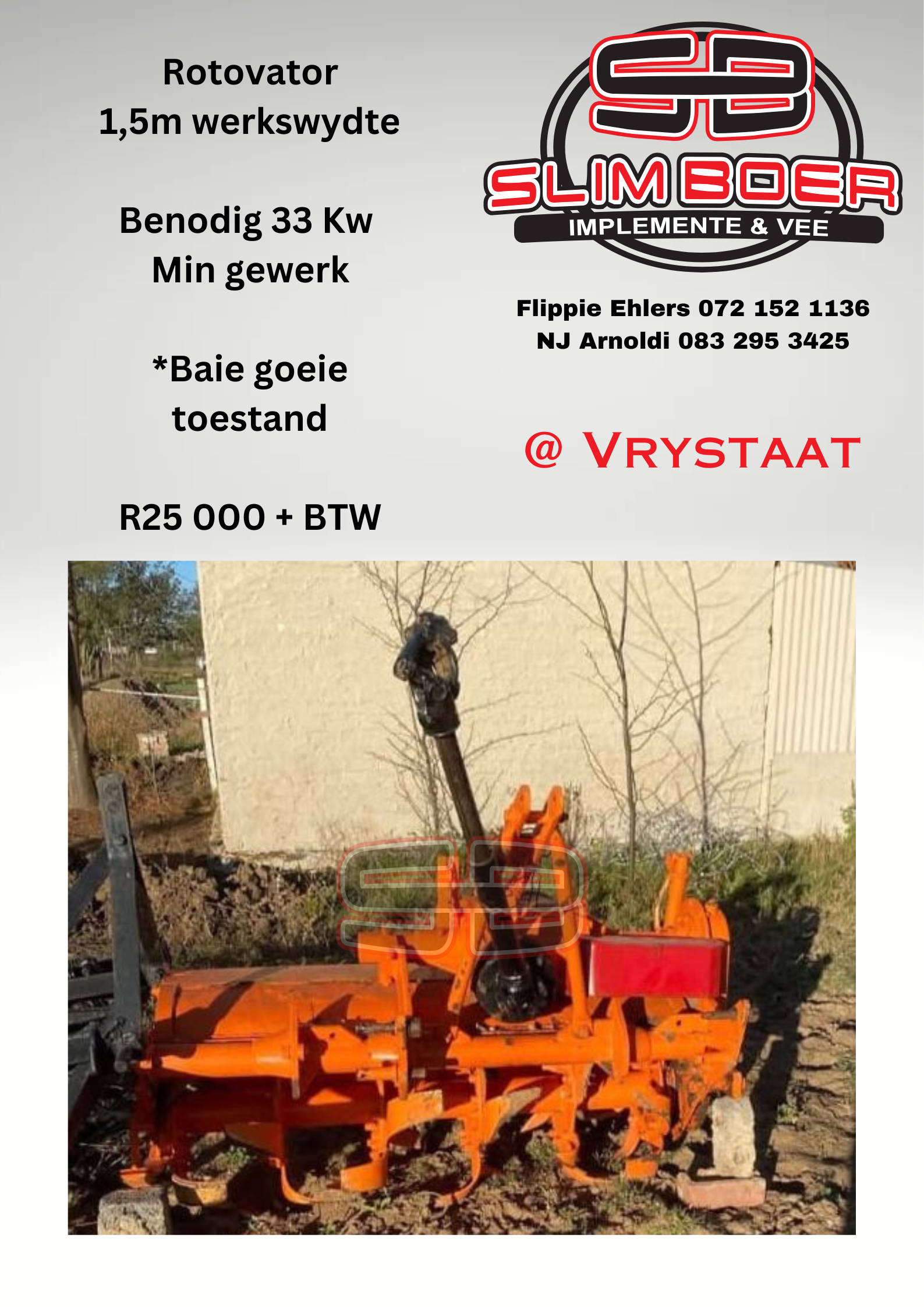 Rotovator 1,5m werkswydte. Benodig 33Kw (min gewerk)