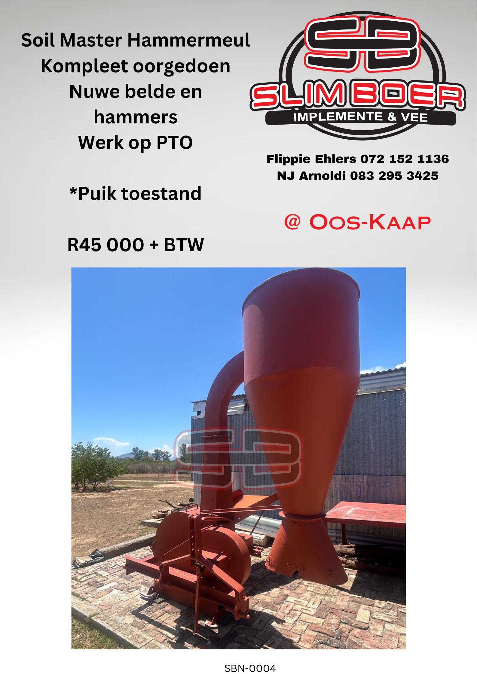 Soil Master Hammermeul, Kompleet oorgedoen, Nuwe belde en hammers, Werk op PTO, Puik toestand