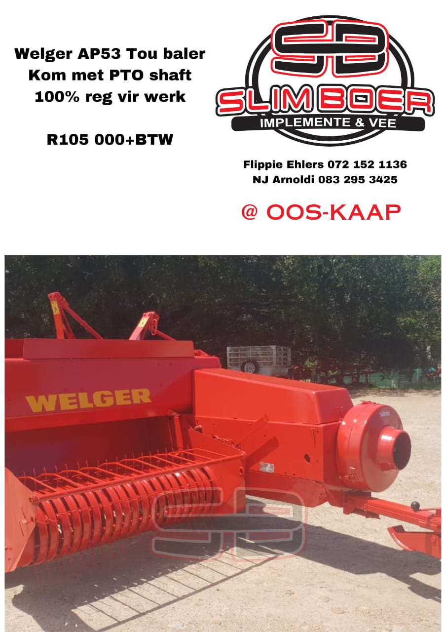 Welger AP 53 Tou baler, kom met PTO shaft. 100% reg vir werk